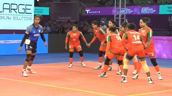 খেলার শুরুতে রেইড দিয়েছিল চ্যাম্পিয়ন ভারত, তবে প্রথম রেইডে পয়েন্ট আদায় করে নেয় বাংলাদেশ। প্রথম দুই মিনিটেই বাংলাদেশের চার খেলোয়াড় আউট হন। সপ্তম মিনিটে বাংলাদেশকে অলআউট করে লোনা আদায় করে ভারত। এ সময় ভারতের ১২ এবং বাংলাদেশের ৯ পয়েন্ট ছিল।