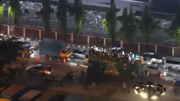 বিমানবন্দর থেকে বের হয়েই ফুটবলাররা চড়ে বসেন তাদের জন্য বিশেষভাবে প্রস্তুত করা সুসজ্জিত এক ছাদখোলা বাসে। চ্যাম্পিয়নদের একনজর দেখতে এবং অভিনন্দন জানাতে বিমানবন্দর থেকে শুরু করে রাজধানীর প্রধান সড়কগুলোর দুই পাশে ভিড় জমিয়েছেন শত শত ফুটবল প্রেমী মানুষ। হাতে জাতীয় পতাকা আর মুখে বিজয়ের স্লোগানে মুখরিত হয়ে উঠেছে রাজপথ। ফুটবলাররাও বাসের ওপর থেকে হাত নেড়ে সাধারণ মানুষের ভালোবাসার জবাব দিচ্ছেন।