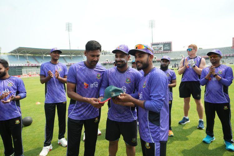 মেহেদী হাসান মিরাজ (অধিনায়ক), তানজিদ হাসান তামিম, সৌম্য সরকার, সাইফ হাসান, নাজমুল হোসেন শান্ত, লিটন দাস, তাওহীদ হৃদয়, রিশাদ হোসেন, তাসকিন আহমেদ, শরিফুল ইসলাম ও নাহিদ রানা