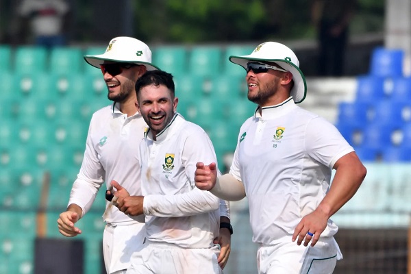 এরআগে টসে জিতে ব্যাটে নেমে ৬ উইকেটে ৫৭৫ রান তুলে ইনিংস ঘোষণা করে সাউথ আফ্রিকা। সেঞ্চুরি করেন তিনজন- টনি ডি জর্জি ১৭৭, ত্রিস্তান স্টাবস ১০৬ এবং উইয়ান মুল্ডার অপরাজিত ১০৫ রান করেন। ডেভিড বেডিংহাম ৫৯ এবং সেনুরান মুথুস্যামি ৭০ রানে অপরাজিত থাকেন।