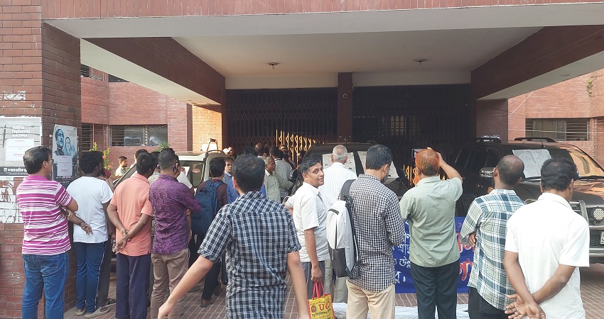 গাছ কাটার দায়ে উপাচার্যসহ কর্মকর্তাদের অবরুদ্ধ করল জাবি শিক্ষার্থীরা