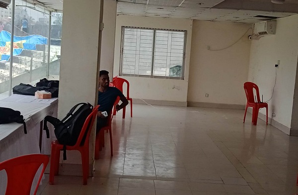 কুমিল্লা জেলা ক্রীড়া পরিষদের সাধারণ সম্পাদকের কক্ষকে অস্থায়ীভাবে বানানো হয়েছে বাংলাদেশ বেতারের ধারাভাষ্য কক্ষ। বেতারের জন্য কেন আলাদাভাবে ধারাভাষ্য কক্ষ নেই, সেটির সদুত্তর দেয়ার মতো দায়িত্বশীল কাউকেই নাগালে পাওয়া গেল না।