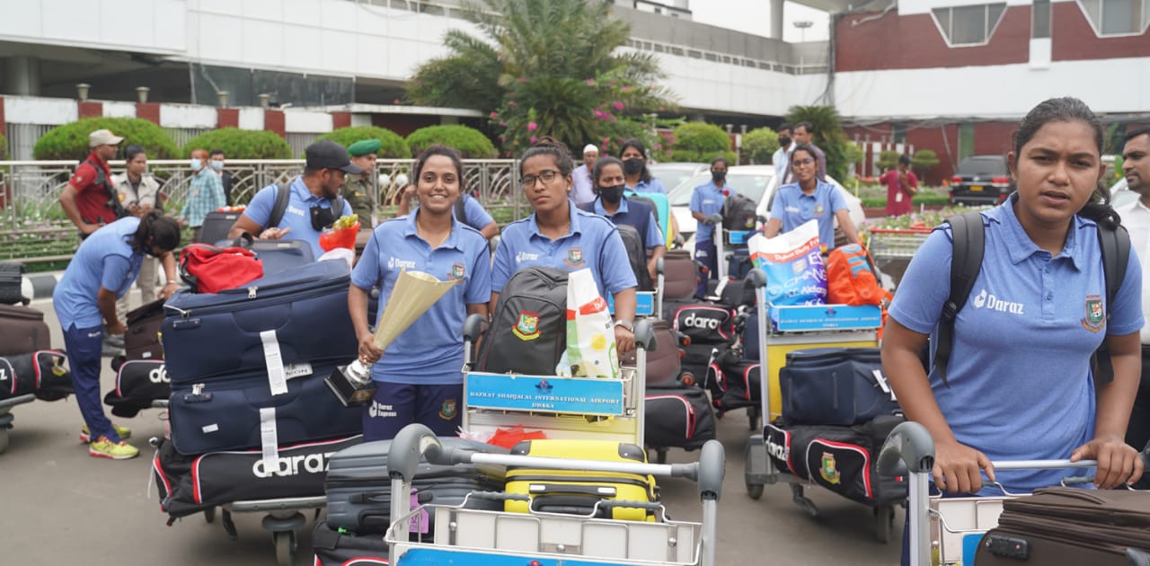 ২০২৩ টি-টুয়েন্টি বিশ্বকাপে খেলা নিশ্চিত করার পাশাপাশি বাছাইপর্বে চ্যাম্পিয়ন হয়ে দেশে ফিরেছে বাংলাদেশ নারী ক্রিকেট দল। দুবাই থেকে মঙ্গলবার সকাল ৮টা ৫০ মিনিটে হযরত শাহজালাল আন্তর্জাতিক বিমানবন্দরে পৌঁছে নিগার সুলতানা জ্যোতির দল।