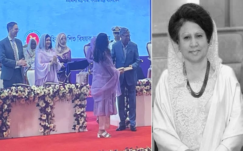 খালেদা জিয়ার পক্ষে পুরস্কার গ্রহণ করেন তাঁর নাতনি ও প্রধানমন্ত্রী তারেক রহমানের মেয়ে ব্যারিস্টার জাইমা রহমান।