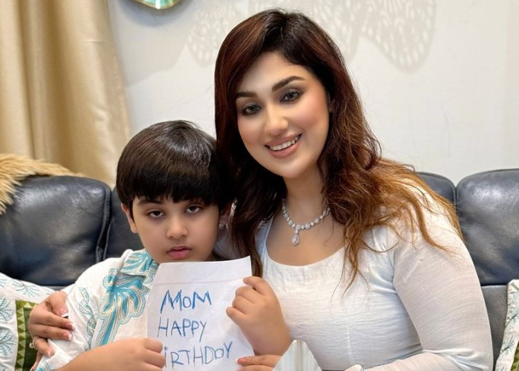 ভিডিওতে দেখা যায়, বেগুনি রঙের কেকের সামনে বসে জয় মাকে বলে, “মম… হ্যাপি বার্থডে!” এরপর মা-ছেলে মিলে হাসি-আনন্দে কাটান সেই মুহূর্ত।