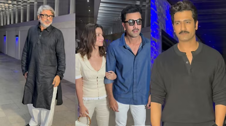জন্মদিনের পার্টিতে একসঙ্গে পাপারাজ্জির ক্যামেরায় পোজ দিতে দেখা যায় রণবীর-আলিয়াকে। সেখানে বানশালি পৌঁছতেই রণবীর-আলিয়া তাকে জড়িয়ে ধরেন। ভিকিও একই পথের পথিক হন। একইসঙ্গে রণবীরকে জড়িয়ে ধরতেও দেখা যায় তাকে।