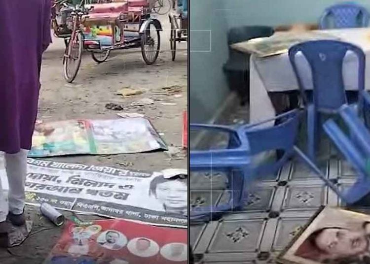 এ সময় দলটির প্রতিষ্ঠাতা সাবেক রাষ্ট্রপতি জিয়াউর রহমান, সাবেক প্রধানমন্ত্রী খালেদা জিয়া এবং তারেক রহমানের ছবি ভাঙচুর করা হয়।