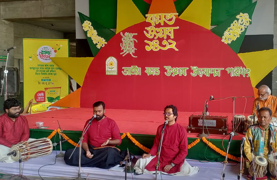 শাহ আবদুল করিমের ‘বসন্ত বাতাস’সহ বিভিন্ন কালজয়ী বাংলা গান পরিবেশন করেন শিল্পীরা। ছিল একক সংগীত, আবৃত্তি, শিশু-কিশোর ও ক্ষুদ্র নৃ-গোষ্ঠীর শিল্পীদের পরিবেশনা, পাশাপাশি প্রীতি বন্ধনী ও আবির বিনিময়।