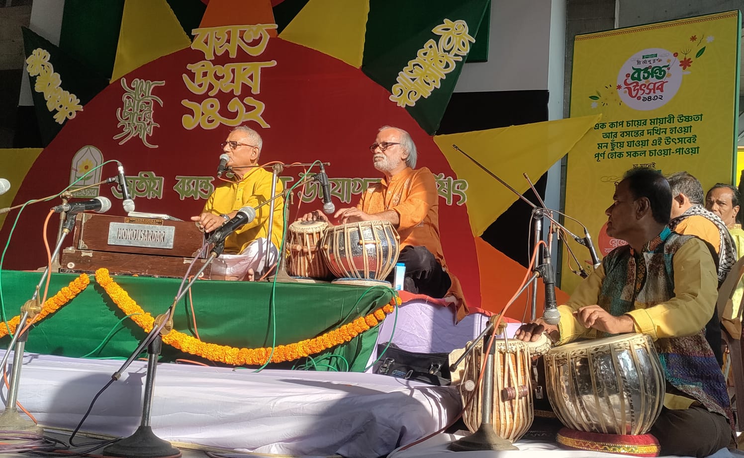 কেউ পরিবার নিয়ে, কেউ বন্ধুদের সঙ্গে ছবি তুলতে ব্যস্ত- চারদিকে উৎসবের আমেজ। সকাল ৮টায় বেঙ্গল পরম্পরা সংগীতালয়ের শিক্ষার্থীদের সমবেত যন্ত্র ও কণ্ঠসংগীত পরিবেশনার মধ্য দিয়ে অনুষ্ঠানের সূচনা হয়। পরে একের পর এক গান ও নৃত্য পরিবেশনায় জমে ওঠে আয়োজন।