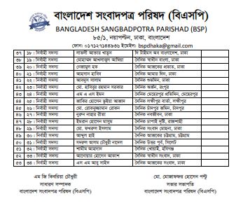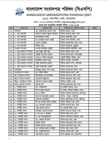 বাংলাদেশ সংবাদপত্র পরিষদ (বিএসপি)’র ২০২২-২০২৪ মেয়াদের ৫৩ সদস্য বিশিষ্ট নবনির্বাচিত কার্যনির্বাহী পরিষদের সভাপতি নির্বাচিত হয়েছেন দৈনিক প্রভাত পত্রিকার সম্পাদকমণ্ডলীর সভাপতি জনাব মোজাফফর হোসেন পল্টু ও সাধারণ সম্পাদক নির্বাচিত হয়েছেন দৈনিক জাতীয় অর্থনীতির সম্পাদক প্রকাশক এম জি কিবরিয়া চৌধুরী।