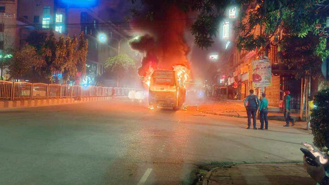 এর আগে ধানমণ্ডির ল্যাব এইড হাসপাতালের সামনে যাত্রীবাহী বাসে আগুন দেয় দুর্বৃত্তরা। শনিবার রাত ১১টা ৪৮ মিনিটের দিকে সাভার থেকে ছেড়ে আসা মৌমিতা পরিবহনের একটি বাসে আগুন দেওয়া হয়। খবর পেয়ে পলাশী ব্যারাক ফায়ার স্টেশনের দুটি ইউনিট রাত ১২টায় ঘটনাস্থলে গিয়ে আগুন নির্বাপন করে।