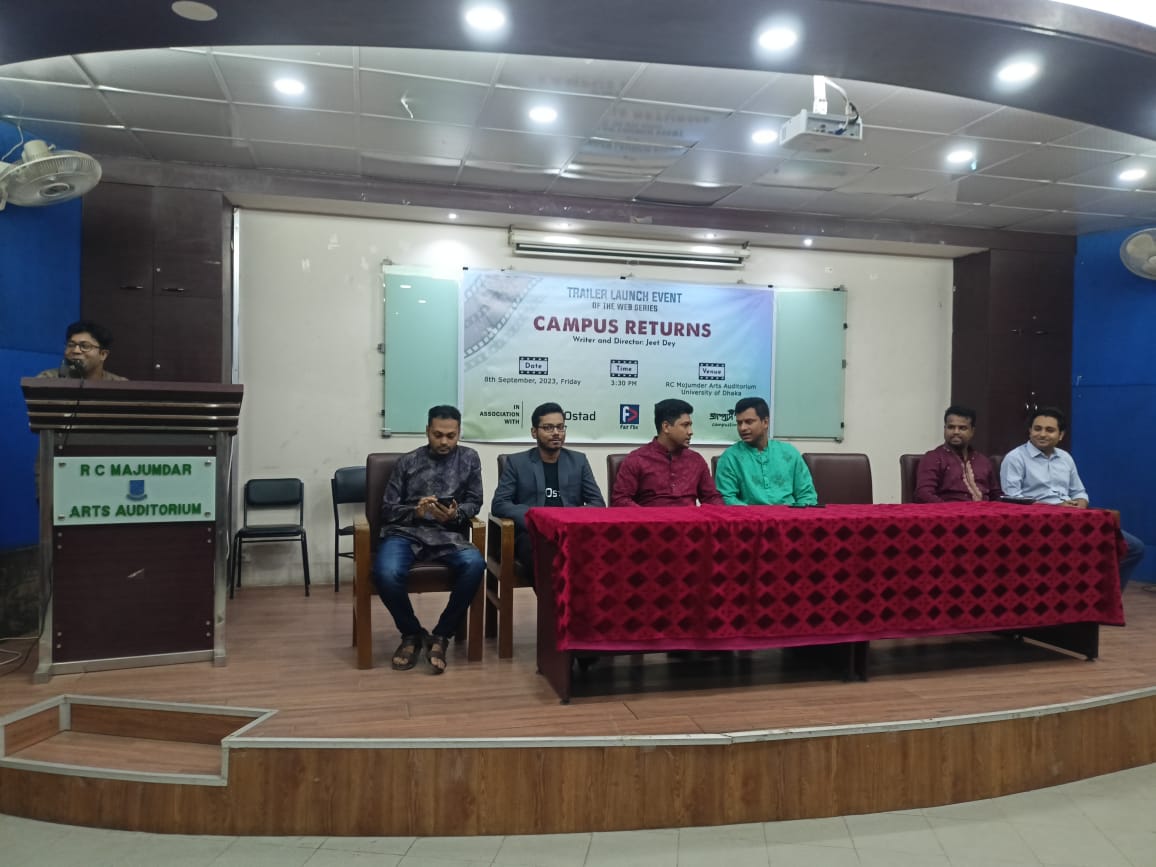 অনলাইনে মুক্তি পেয়েছে ওয়েব সিরিজ “ক্যাম্পাস রিটার্নস” এর ট্রেলার। বিশ্ববিদ্যালয় জীবন নির্ভর এই ওয়েব সিরিজটি নির্মাণ করেছেন তরুণ নির্মাতা জিৎ দে। শুক্রবার (৮ সেপ্টেম্বর) ঢাকা বিশ্ববিদ্যালয়ের আর সি মজুমদার মিলনায়তনে হলো ওয়েব সিরিজটির ট্রেলার প্রকাশ অনুষ্ঠান।