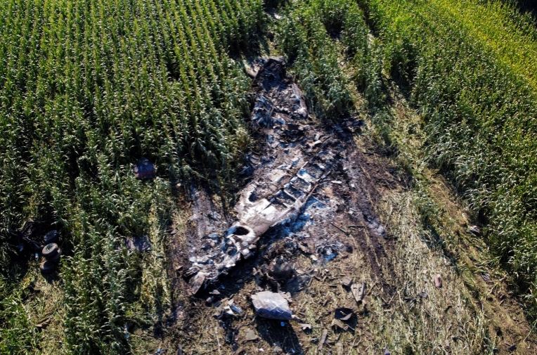 দুর্ঘটনাস্থলের ড্রোনে তোলা ছবিতে দেখা যায়, গ্রিসের কাভালা শহরের প্রত্যন্ত একটি এলাকার মাঠে আছড়ে পড়েছে অ্যান্তনোভ অ্যান-১২ কার্গো উড়োজাহাজটি।