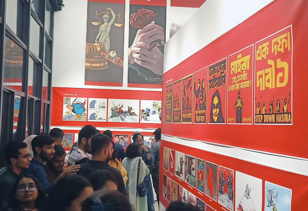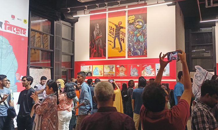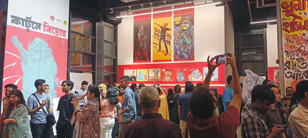 অনেকেই মনে করেন, হাসিনা সরকারের পতনে শক্তিশালী ভূমিকা রেখেছে কার্টুন। অনলাইন-অফলাইনের সেসব আলোচিত কার্টুন নিয়ে পান্থপথের দৃক গ্যালারিতে শুরু হয়েছে ‘কার্টুনে বিদ্রোহ’ নামে প্রদর্শনী। রবিবার বিকেল-সন্ধ্যায় সরেজমিনে গিয়ে দেখা গেছে, ‘কার্টুনে বিদ্রোহ’ প্রদর্শনীটি দেখতে দর্শনার্থীদের উপচেপড়া ভিড়। যেখানে সব বয়সী মানুষকে দেখা গেছে।