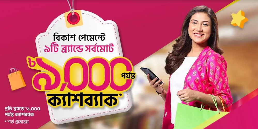 পছন্দের লাইফস্টাইল ব্র্যান্ডশপে কেনাকাটার আনন্দ আরও বাড়িয়ে দিতে বিকাশ নিয়ে এলো আকর্ষণীয় ক্যাশব্যাক অফার। এই অফারের আওতায় নয়টি পছন্দের ব্র্যান্ডশপ- সেইলর, ক্যাটস আই, মনসুন রেইন, কালার রোজ, কান্ট্রি বয়, শৈশব ফ্যাশন, ইউ-টার্ন ফ্যাশন এক্সপ্রেস, স্মার্টেক্স এবং ফ্রিজোন এ কেনাকাটায় বিকাশ পেমেন্টে সর্বোচ্চ ৯ হাজার টাকা পর্যন্ত ক্যাশব্যাক নিতে পারবেন গ্রাহকরা।