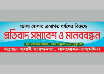 ভোলা জেলায় ক্রমাগত ধর্ষণ এবং সন্ত্রাস-চাঁদাবাজির বিরুদ্ধে আজ প্রতিবাদ সমাবেশ ও মানববন্ধন আয়োজন করা হয়েছে। আজ (৭ জুলাই) সোমবার দুপুরে...