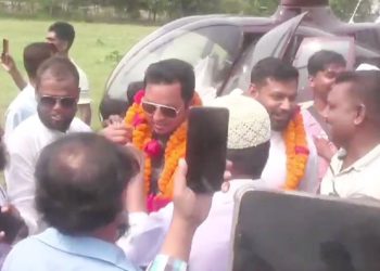 হেলিকপ্টারে করে ৮ বছর পরে গ্রামে এলো ইতালিপ্রবাসী, মানুষের ঢল