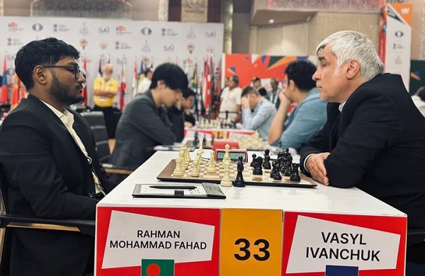 ভারতের গোয়ায় চলতি বিশ্বকাপে ইউক্রেনের গ্র্যান্ডমাস্টার ভাসিল ইভানচুকের বিপক্ষে ড্র করেছেন ফাহাদ। দ্বিতীয় রাউন্ডের ম্যাচে তিনি কালো ঘুঁটি নিয়ে শ্লাভ ডিফেন্স পদ্ধতিতে খেলে ৩০ চালে ড্র করেন।