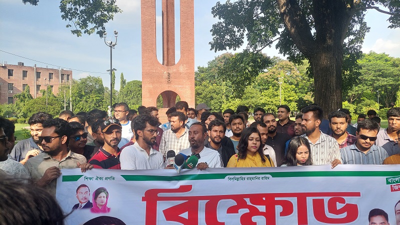 শনিবার (১২ জুলাই) বিকেল ৪.১৫ মিনিটে বিশ্ববিদ্যালয়ের পরিবহন চত্বর থেকে বিক্ষোভ মিছিল বের করেন শাখা ছাত্রদলের নেতাকর্মীরা। মিছিলটি বিশ্ববিদ্যালয়ের প্রধান সড়ক হয়ে শহীদ মিনার সংলগ্ন সড়কে গিয়ে শেষ হয়।