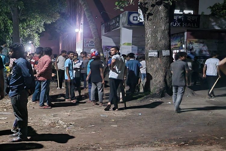 আজ (১৪ মে) ভোররাত ১টা ৩০ মিনিটের পর থেকে বিশ্ববিদ্যালয়ের মাদার বখ্স হলের সামনে জড়ো হন তাদের অনুসারী বিভিন্ন হলের নেতাকর্মীরা। এসময় অনেকের হাতে রড, স্ট্যাম্প এবং দেশীয় অস্ত্র দেখা গেছে।