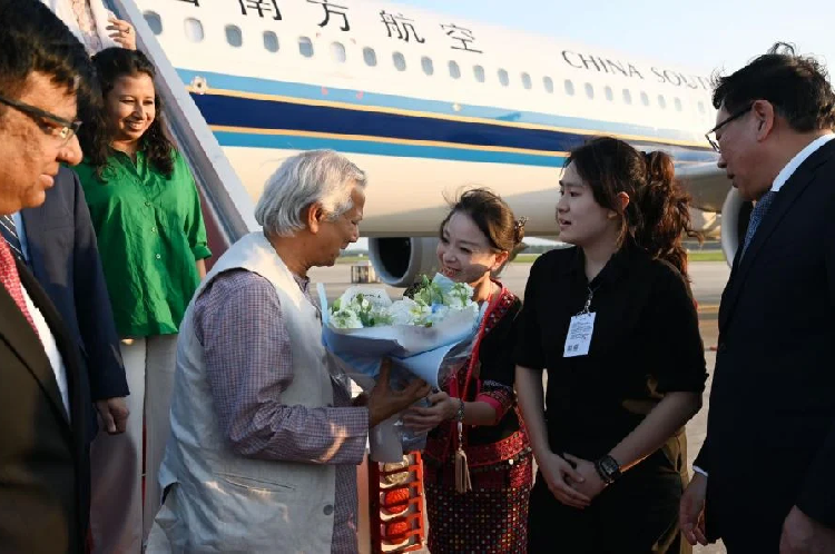 বেইজিংয়ে বাংলাদেশের রাষ্ট্রদূত মো. নাজমুল ইসলাম এবং হাইনান প্রদেশের ভাইস গভর্নর বিমানবন্দরে প্রধান উপদেষ্টাকে অভ্যর্থনা জানান।