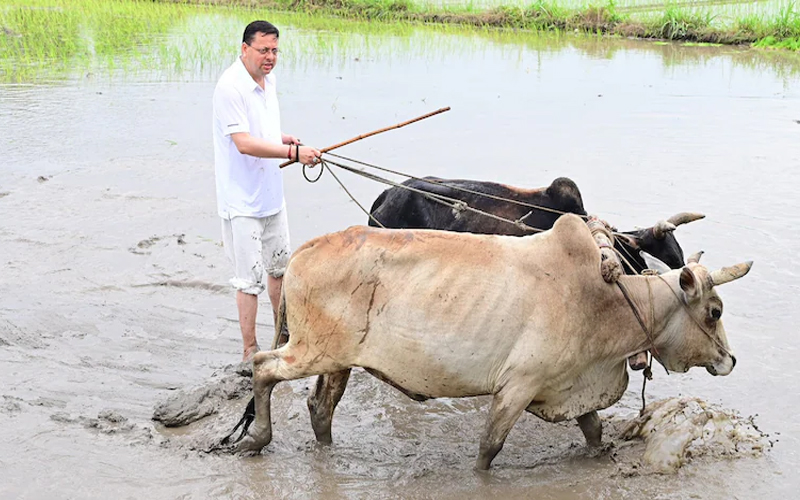ভারতের উত্তরাখণ্ডের মুখ্যমন্ত্রী পুষ্কর সিং ধামী শনিবার রাজ্যের উধম সিং নগর জেলায় নিজে গ্রাম খাতিমায় একটি মাঠে ধান রোপণ এবং দুটি ষাড় দিয়ে জমিতে হাল চাষ করেছেন। এর মাধ্যমে তিনি কৃষকদের কঠোর পরিশ্রম ও ত্যাগের প্রতি শ্রদ্ধা জানান।