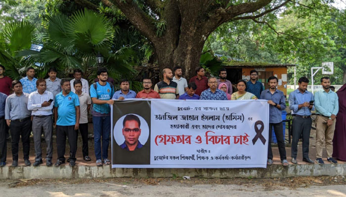 চট্টগ্রাম প্রকৌশল ও প্রযুক্তি বিশ্ববিদ্যালয়ের (চুয়েট) ইলেকট্রিক্যাল ও ইলেকট্রনিক ইঞ্জিনিয়ারিং বিভাগের নবম ব্যাচের সাবেক শিক্ষার্থী তানজিল জাহান ইসলাম তামিম হত্যার প্রতিবাদে মানববন্ধন হয়েছে। এ সময় জড়িতদের গ্রেপ্তার করে আইনানুগ শাস্তির দাবি জানানো হয়।