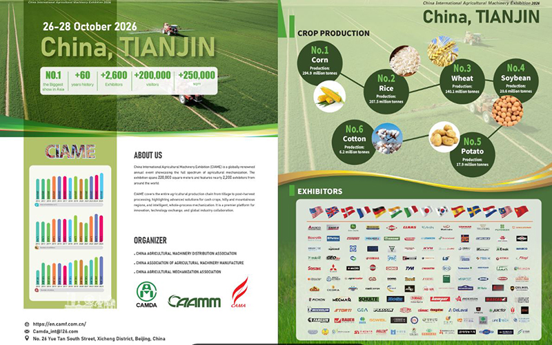 উল্লেখ্য কৃষিতে যন্ত্রের ব্যবহার বাড়াতে এবং কৃষিযন্ত্রকে জনপ্রিয় করতে ষাট বছরেরও বেশি সময় ধরে চীনে প্রতি বছর আন্তর্জাতিক কৃষিযন্ত্রপাতি প্রদর্শনীর আয়োজন করা হয়। এ বছরও অক্টোবরে চীনের তিয়ানজিন শহরে আয়োজন করা হবে চায়না ইন্টারন্যাশনাল অ্যাগ্রিকালচারাল মেশিনারি এক্সিবিশন ২০২৬।