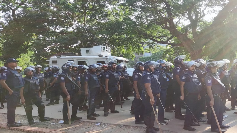 এর আগে, বিকেল সোয়া ৫টার দিকে বিশ্ববিদ্যালয়ের শহীদ মিনার সংলগ্ন সড়কে পুলিশ ও কোটা আন্দোলনকারী শিক্ষার্থীদের মধ্যে সংঘর্ষ শুরু হয়।