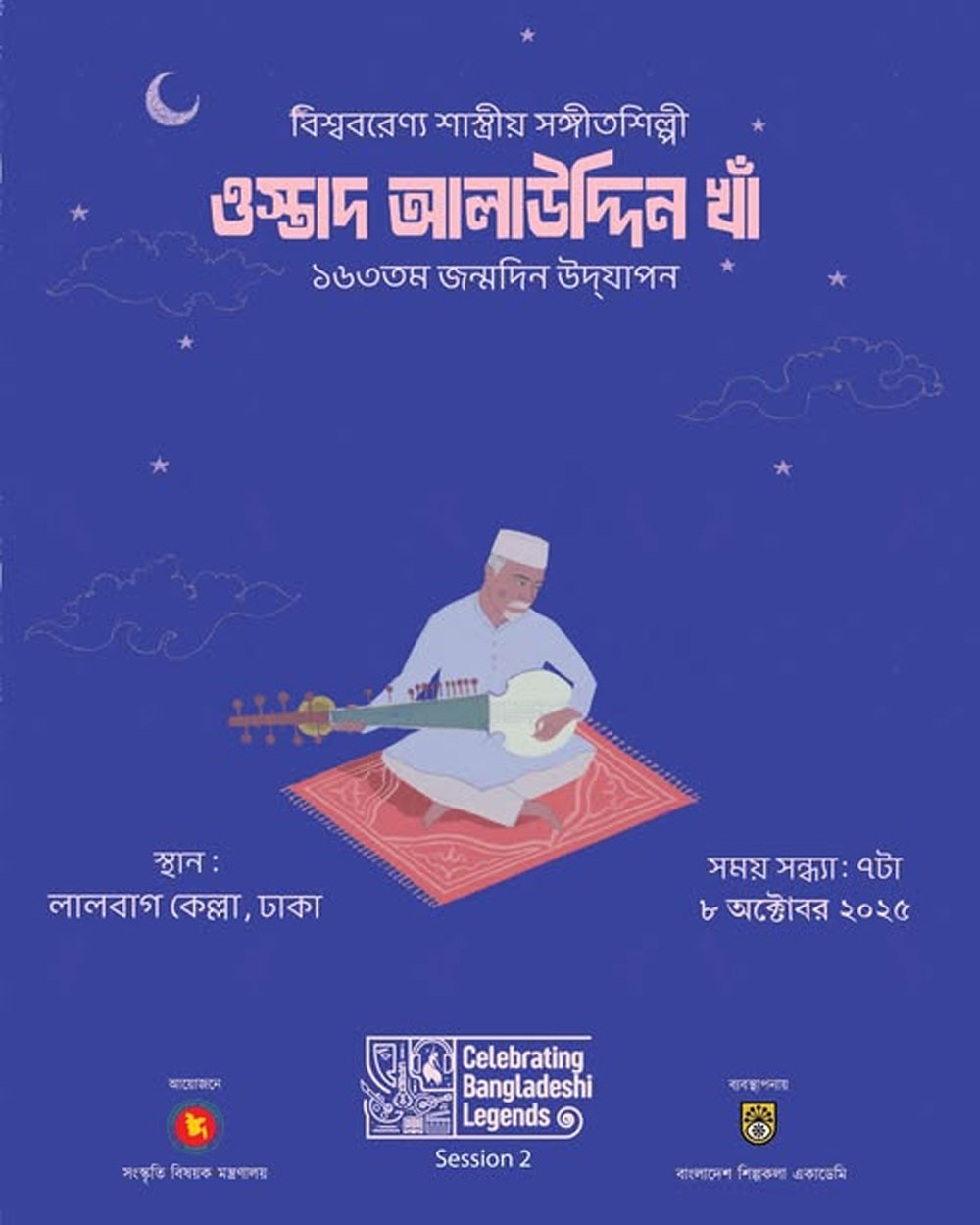 সংস্কৃতি মন্ত্রণালয় জানিয়েছে, অনুষ্ঠানে ওস্তাদ আলাউদ্দিন খাঁ’র প্রপৌত্র ওস্তাদ সিরাজ আলী খান সাহেব ও এই প্রজন্মের তরুণ, প্রতিভাবান শিল্পীগণ শাস্ত্রীয় সংগীত পরিবেশেন করবেন।
