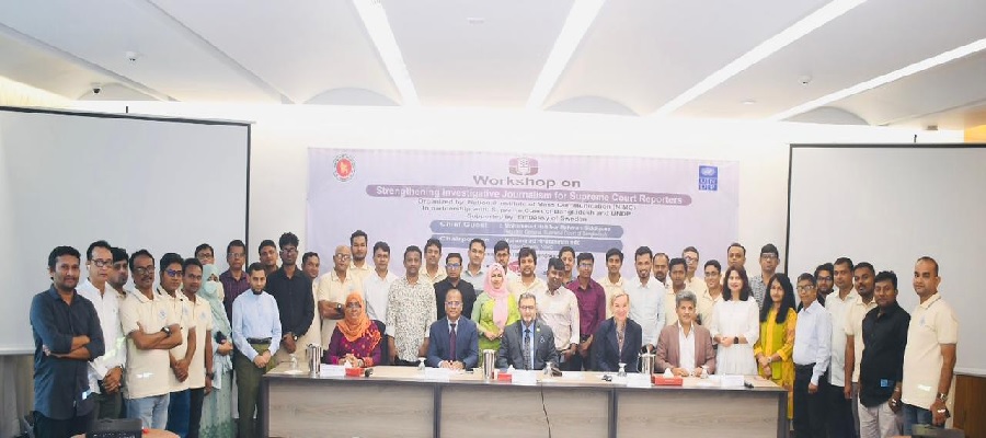 জাতীয় গণমাধ্যম ইনস্টিটিউট (নিমকো)-এর উদ্যোগে এবং সুপ্রিম কোর্ট ও ইউএনডিপির যৌথ অংশীদারিত্বে ও সুইডেন দূতাবাসের সহায়তায় ‘সুপ্রিম কোর্ট রিপোর্টারদের অনুসন্ধানী সাংবাদিকতা শক্তিশালীকরণ’ শীর্ষক দিনব্যাপী কর্মশালা অনুষ্ঠিত হয়েছে। ‘ল’ বিটের ৪০ জন সাংবাদিক এই কর্মশালায় অংশগ্রহণ করেন।