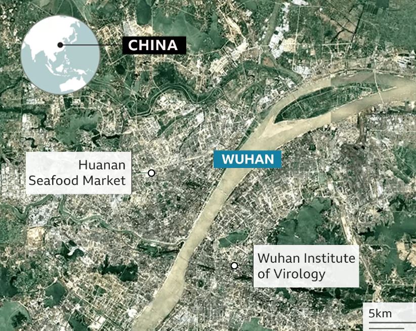 কিছু গবেষণায় দেখা গেছে কোভিড-১৯ ভাইরাস চীনের উহান শহরের একটি সামুদ্রিক খাবার ও বন্যপ্রাণীর বাজার থেকে মানুষের দেহে প্রথম সংক্রমিত হয়। আর এই বাজারটি পৃথিবীর প্রথম শ্রেণির একটি ভাইরাস গবেষণাগার ” উহান ইনস্টিটিউট অব ভাইরোলজি” থেকে মাত্র ৪০ মিনিট দূরে অবস্থিত।