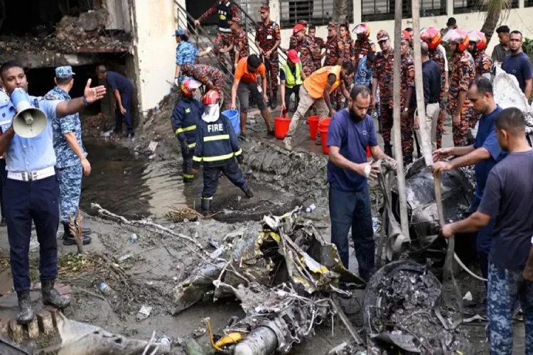 বিমান বিধ্বস্ত হওয়ার পরপরই আগুন ধরে যায় স্কুল ভবনে। তখন দগ্ধ শিশুদের আর্তনাদ, সন্তানের খোঁজে পাগলপ্রায় মা-বাবা ও স্বজনদের আহাজারিতে ভারী হয়ে ওঠে চারপাশ।