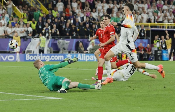 প্রথমার্ধ থেকে দাপুটে শুরু করেছিল জার্মানি। একের পর এক আক্রমণে ডেনমার্ককে পরীক্ষায় রেখেছিল আয়োজক দেশটি। নিকো শ্লোটটেরবেকের হেডে চতুর্থ মিনিটেই জালের দেখা পায় দলটি। তবে বলটি আসার সময় বক্সে ডেনিশ খেলোয়াড় ফাউলের শিকার হওয়ায় ভিএআর সিদ্ধান্তে বাতিল হয় গোলটি।