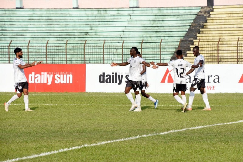 প্রচণ্ড গরমের মাঝে লড়াইয়ে মেতেছিল দুদল। ৩৪ মিনিটে প্রথম জালের দেখা পায় মোহামেডান। লিড এনে দেন শাহরিয়ার ইমন। এরপর দিয়াবাতের গোলোৎসবের শুরু হয়। প্রথমার্ধের শেষ দিকে নিজের প্রথম গোল করেন মোহামেডান অধিনায়ক। যোগ করা সময়ে নিজের দ্বিতীয় গোলের দেখা পান তিনি।