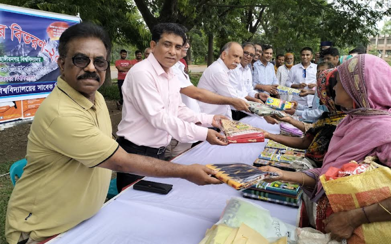 বুধবার ১২ জুন বিকাল সাড়ে ৪ টায় বিশ্ববিদ্যালয়ের শহীদ মিনার চত্বরে এ ঈদ সামগ্রী বিতরণ করা হয়। সামগ্রীর মধ্যে লুঙ্গি, শাড়ি, জামা প্রভৃতি দেয়া হয়েছে।