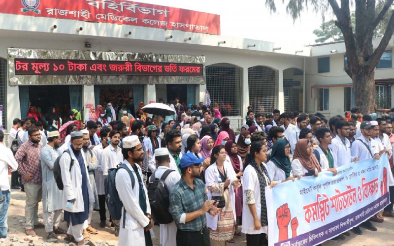 আন্দোলনরত শিক্ষার্থীরা বলেন, রাজশাহী মেডিকেল কলেজ হাসপাতালের সব ইন্টার্ন চিকিৎসক কমপ্লিট শাটডাউন ঘোষণা করেছে, দাবি না আদায় হওয়া পর্যন্ত তা অব্যাহত থাকবে।