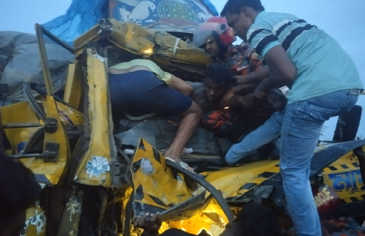 পদ্মা সেতু থেকে ঢাকাগামী একটি ট্রাক (ঢাকা মেট্রো-ট-২৪৭৪০৬) নিয়ন্ত্রণ হারিয়ে একটি অজ্ঞাত গাড়িকে ধাক্কা দিলে চালক গাড়ির ভেতরে আটকে যান। এর ফলে সড়কে যানজট তৈরি হলে পেছনে থাকা অপর একটি ট্রাক (যশোর ট-১১-২৬০১) নিয়ন্ত্রণ হারিয়ে দাঁড়িয়ে থাকা আরেকটি ট্রাককে (ঢাকা মেট্রো-ট-২২-২১৭৩) ধাক্কা দিলে দ্বিতীয় ট্রাকের চালকও আটকে পড়েন।