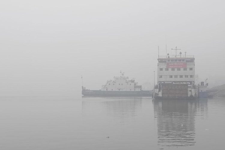 রাজবাড়ীর দৌলতদিয়া ও মানিকগঞ্জের পাটুরিয়া নৌপথে ঘন কুয়াশায় ফেরি চলাচল বন্ধ রয়েছে।