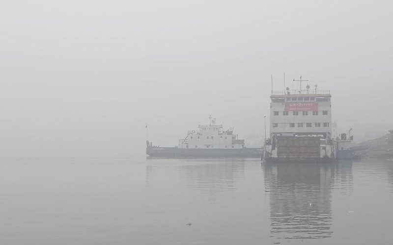 রাজবাড়ীর দৌলতদিয়া ও মানিকগঞ্জের পাটুরিয়া নৌপথে ঘন কুয়াশায় ফেরি চলাচল বন্ধ রয়েছে।