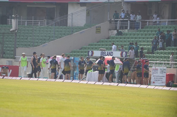 অবশ্য মাঠে ছিলেন না আয়ারল্যান্ড কোচ হেনরিখ মালান। ড্রেসিংরুমে বসে টের পেয়েছেন ভূমিকম্প। পরে অবশ্য বেরিয়ে আসেন মাঠে। সংবাদ সম্মেলনে এসে অভিজ্ঞতার কথা জানালেন তিনিও।