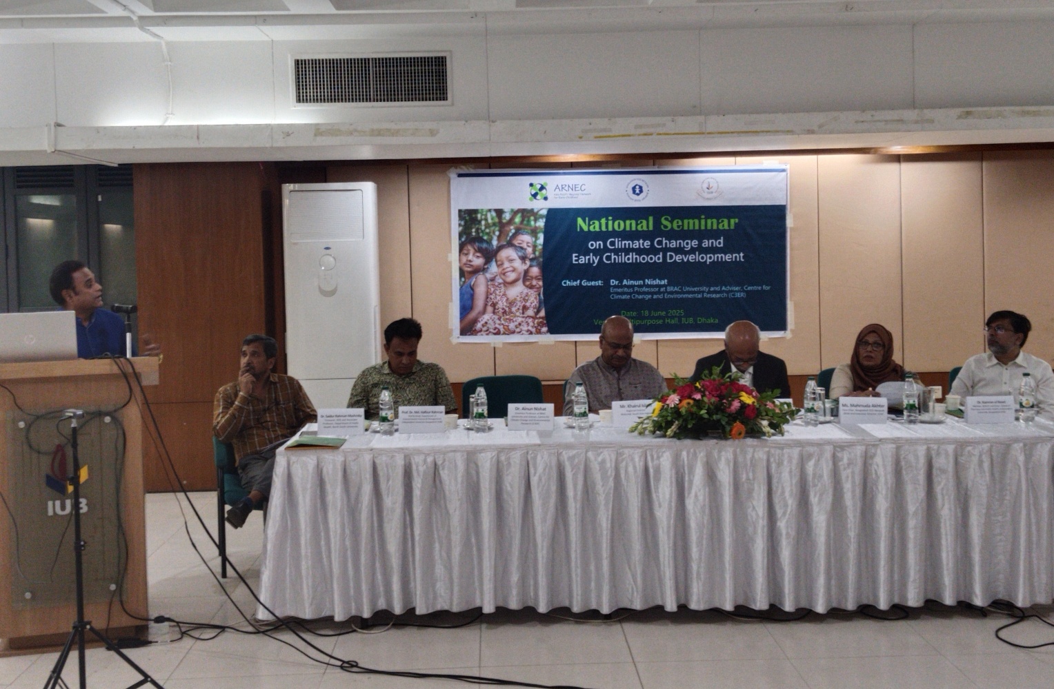 সূচনা ও স্বাগত বক্তব্য দেন বাংলাদেশ ইসিডি নেটওয়ার্কের কোষাধ্যক্ষ ও নর্থ সাউথ ইউনিভার্সিটির পাবলিক হেলথ বিভাগের সহযোগী অধ্যাপক অধ্যাপক ড. এসএম সাইদুর রহমান মাশরেকী। প্রবন্ধ উপস্থাপন করেন এশিয়া-প্যাসিফিক রিজিওনাল নেটওয়ার্ক ফর আর্লি চাইল্ডহুডের (আর্নেক) প্রোগ্রাম অ্যান্ড পার্টনারশিপ স্পেশালিস্ট ড. নীলিমা চোপড়া । ক্লাইমেট চেঞ্জ এন্ড আর্লি চাইল্ডহুড ডেভেলপমেন্ট বিষয়ক প্রবন্ধ উপস্থাপন করেন বাংলাদেশ ইসিডি নেটওয়ার্কের (বেন) ভাইস-চেয়ার মাহমুদা আখতার।