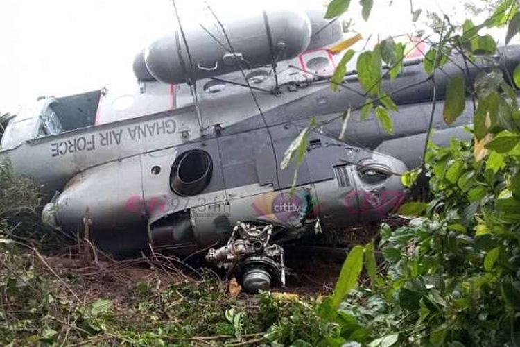 ঘানার সেনাবাহিনী জানিয়েছে, দেশটির দক্ষিণাঞ্চলের আশান্তি অঞ্চলের গভীর বনভূমিতে সামরিক বাহিনীর জেড-নাইন মডেলের হেলিকপ্টারটি বিধ্বস্ত হয়। বুধবার সকালে হেলিকপ্টারটিতে চড়ে আক্রা থেকে ওবুয়াসি শহরে একটি অবৈধ খনি বিষয়ক কর্মসূচিতে অংশ নিতে যাচ্ছিলেন তারা। দুর্ঘটনার কারণ অনুসন্ধানে তদন্ত শুরু করেছে দেশটির সেনাবাহিনী।