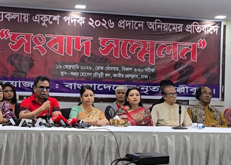 সোমবার (১৬ ফেব্রুয়ারি) বিকেলে রাজধানীর জাতীয় প্রেসক্লাবের জহুর হোসেন চৌধুরী হলে আয়োজিত এক সংবাদ সম্মেলনে বিভিন্ন প্রজন্মের নৃত্যশিল্পীরা এ দাবি জানান। সেখানে লিখিত বক্তব্য পাঠ করেন নৃত্যশিল্পী ও নৃত্যপরিচালক ফারহানা চৌধুরী বেবি।