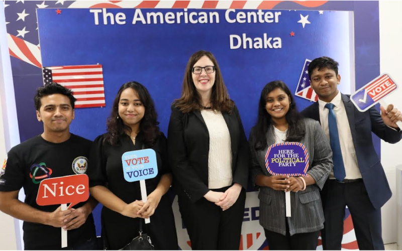 ঢাকায় যুক্তরাষ্ট্র দূতাবাসের আমেরিকান সেন্টারে আজ বুধবার ৬ নভেম্বর আয়োজিত হয়েছে প্রেসিডেন্ট নির্বাচন পর্যবেক্ষণ অনুষ্ঠান। বিশেষ এই আয়োজনে বাংলাদেশের তরুণ সমাজ এবং অংশগ্রহণকারীরা সরাসরি যুক্তরাষ্ট্রের নির্বাচনী প্রক্রিয়া পর্যবেক্ষণের সুযোগ পান।