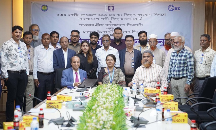 মেঘনা গ্রুপের অর্থনৈতিক অঞ্চল মেঘনা ইকোনমিক জোন লিঃ (এমইজেডএল)-এর আওতাধীন শিল্পাঞ্চলে নিরবচ্ছিন্ন বিদ্যুৎ সরবরাহের জন্য পাওয়ার গ্রিড বাংলাদেশ পিএলসি’র মেঘনাঘাট গ্রিড উপকেন্দ্র হতে ২৩০ কেভি লেভেলে ১০০ মেগাওয়াট বিদ্যুৎ সংযোগ গ্রহণের জন্য ত্রিপক্ষীয় চুক্তি স্বাক্ষরিত হয়েছে।