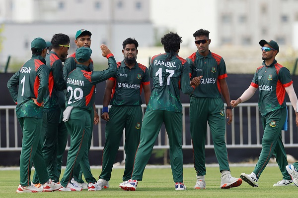 বাংলাদেশের হয়ে রিপন মণ্ডল ও রেজাউর রহমান রাজা দুটি করে উইকেট নেন।