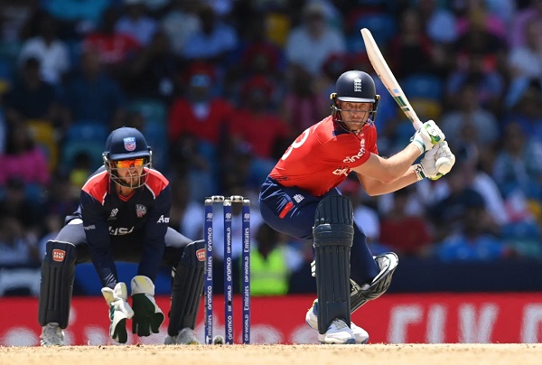 কেনসিংটন ওভালে রানতাড়ায় নেমে শুরু থেকেই যুক্তরাষ্ট্র বোলারদের উপর তাণ্ডব চালান বাটলার। ফিল সল্টকে সঙ্গী করে দলকে বড় জয় উপহার দেন ইংলিশ অধিনায়ক। ৬টি চার ও ৭টি ছক্কায় ৩৮ বলে ৮৩ রান করেন বাটলার। দুই চারে ২১ বলে ২৫ রান করেন সল্ট।