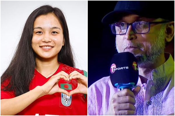 বাংলাদেশ নারী ফুটবল দল ইতিহাস গড়ে দেশে ফিরেছে। প্রথম বারের মতো এশিয়ান কাপ ফুটবলের মূল পর্বে খেলবে সাউথ এশিয়ার চ্যাম্পিয়নরা। মিয়ানমার থেকে ইতিহাস গড়ে দেশে ফেরার দিনই রোববার গভীর রাতে মেয়েদের সংবর্ধনার আয়োজন করেছিল বাফুফে। সেখানে ছিলেন সংস্কৃতি বিষয়ক মন্ত্রণালয়ের উপদেষ্টা মোস্তফা সরয়ার ফারুকী। মিয়ানমার ম্যাচে জোড়া গোল করা ঋতুপর্ণা ভাসলেন ফারুকীর প্রশংসায়।