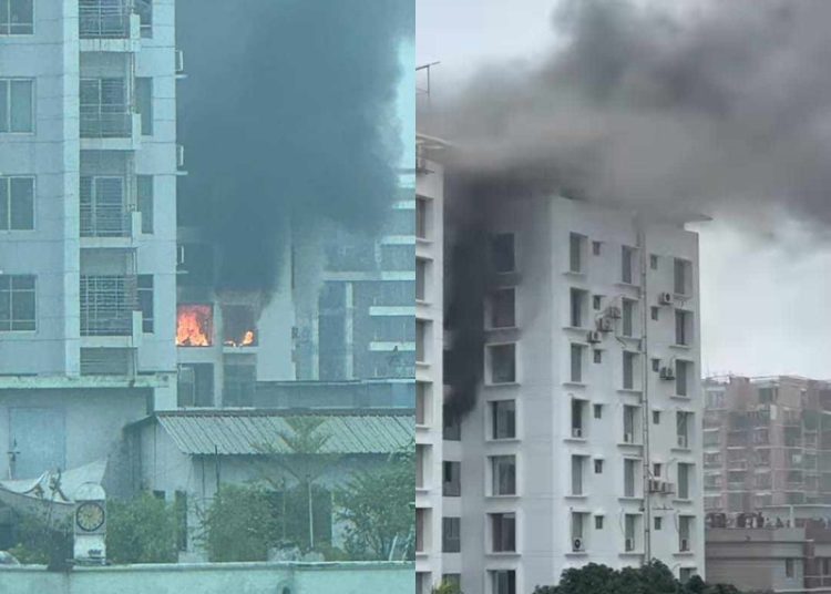 আজ বুধবার (২১ আগস্ট) ধানমন্ডি ৫ নম্বর রোডের ১৮ নম্বর বাসায় এই আগুন লাগে। ১২ তলা ভবনের ৮ তলার একটি বাড়িতে আগুন লেগেছে। সকাল ১০টক ২৫ মিনিটে খবর পেয়ে ১০টা ৪০ মিনিটে ঘটনাস্থলে পৌঁছে ফায়ার সার্ভিস।